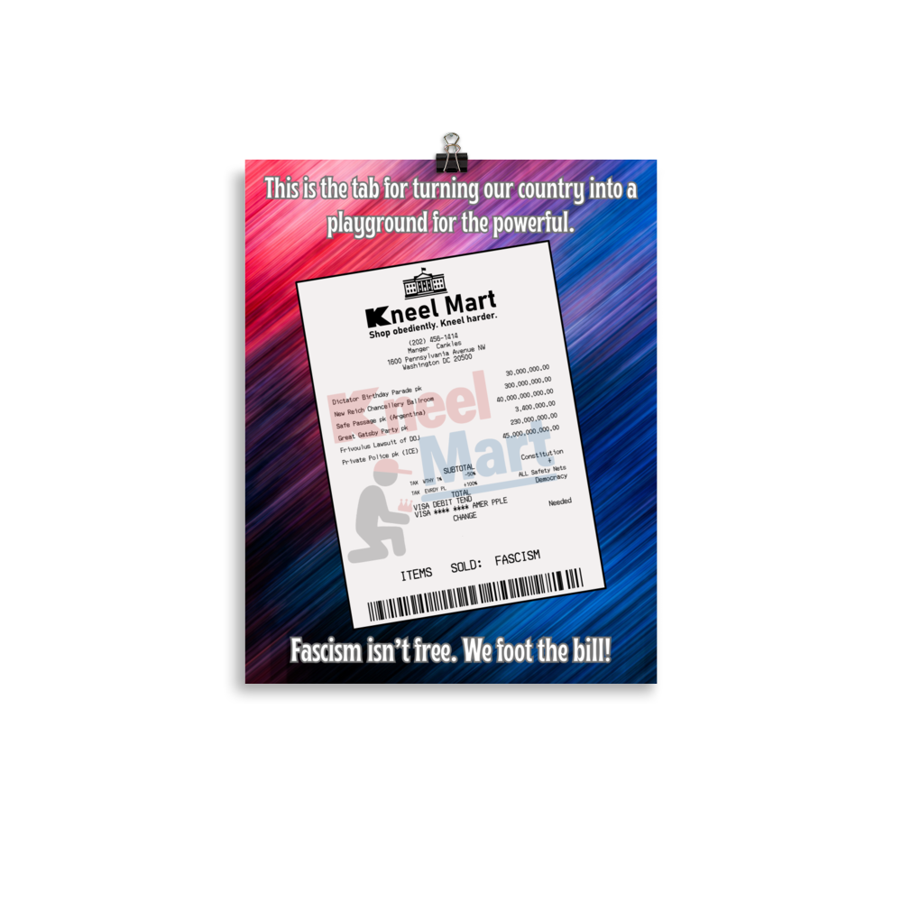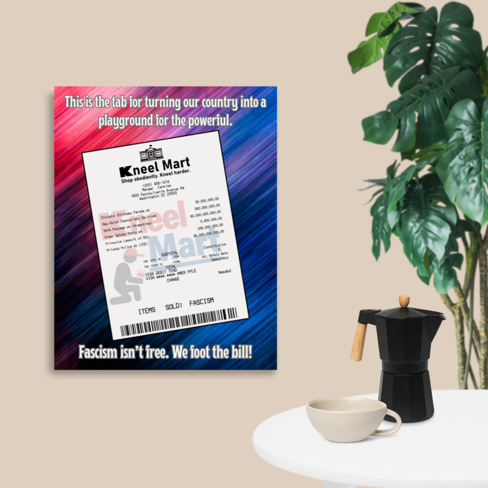 Bring bold truth to your walls with this 11"×14" museum-quality poster. Designed as a striking faux receipt, this piece blends activism and art to spark conversation wherever it hangs.